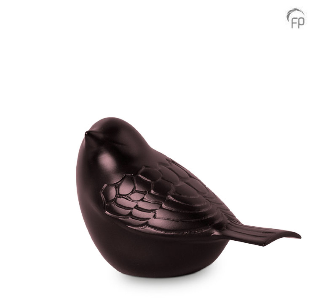 Deze metalen Zangvogel wordt gekenmerkt door de sublieme vormgeving en afwerking, met volop oog voor detail. De urn wordt geproduceerd met aandacht voor mens en milieu, zonder concessies te doen op kwaliteit of design. Het eindresultaat is een hoogwaardig en bovenal eerlijk product, zorgvuldig, ambachtelijk en met liefde geproduceerd. Een waardig product om uw dierbare te gedenken. Deze urn heeft een inhoud van 0,10 ltr. en is 8 cm. hoog. Een symbolische hoeveelheid as kan in de urn worden bewaard. Prijs: EURO 99,00 (exclusief vullen)
